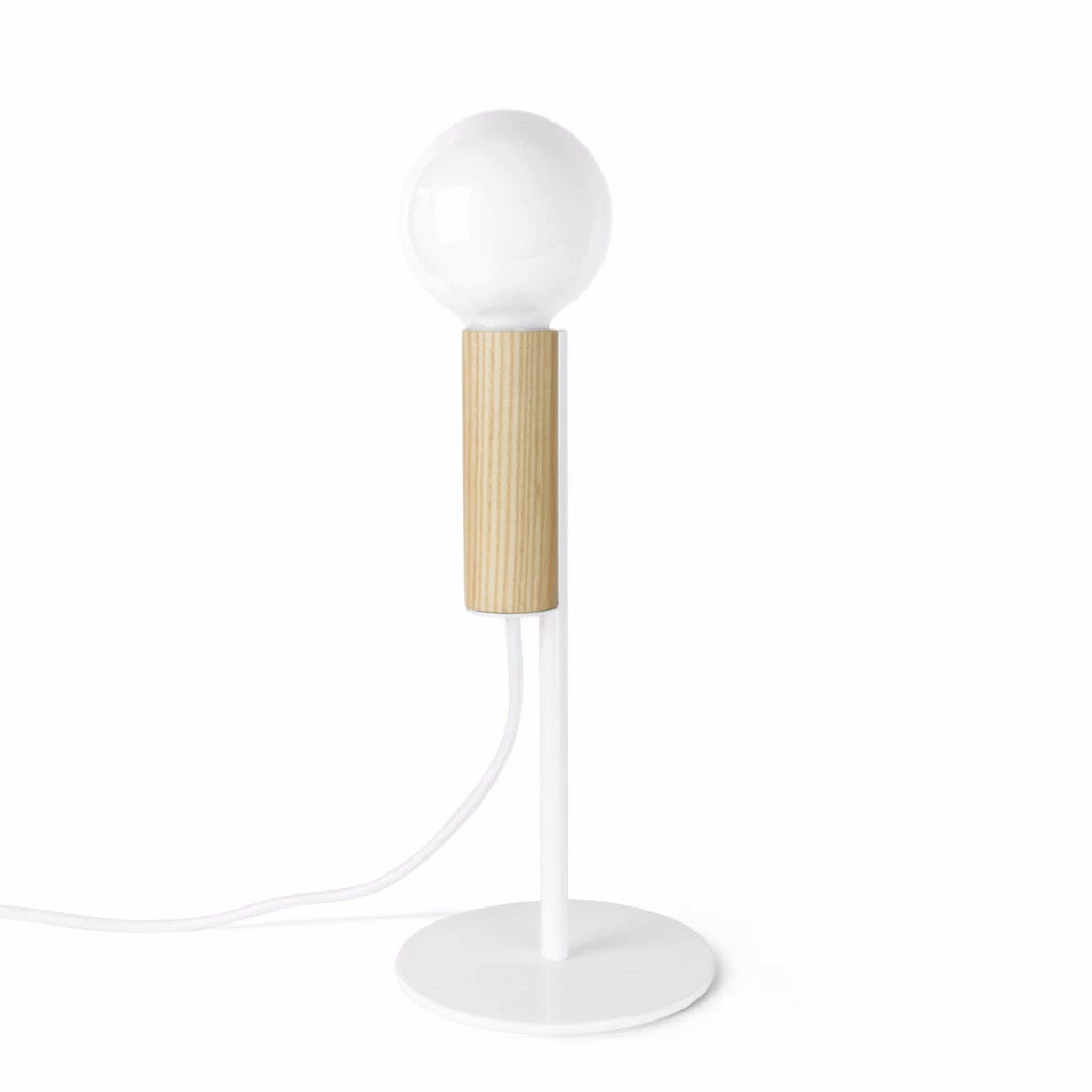 The Cherry Table Lamp has a clean simplistic design along with a metal cylinder base. A great new addition configuration for the Cherry family. Features a hidden magnet allowing the wood cylinder grab the metal base easily.