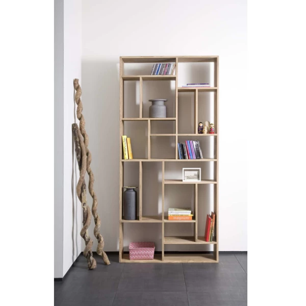 This Ethnicraft Oak M Rack is designed by Alain van Havre, who took his inspiration from the Dutch painter, Piet Mondriaan. Its crafted from a Solid European Oak featuring vertical and horizontal lines that intertwine to create a unique grid combination. Great as a bookshelf or as a room divider.
