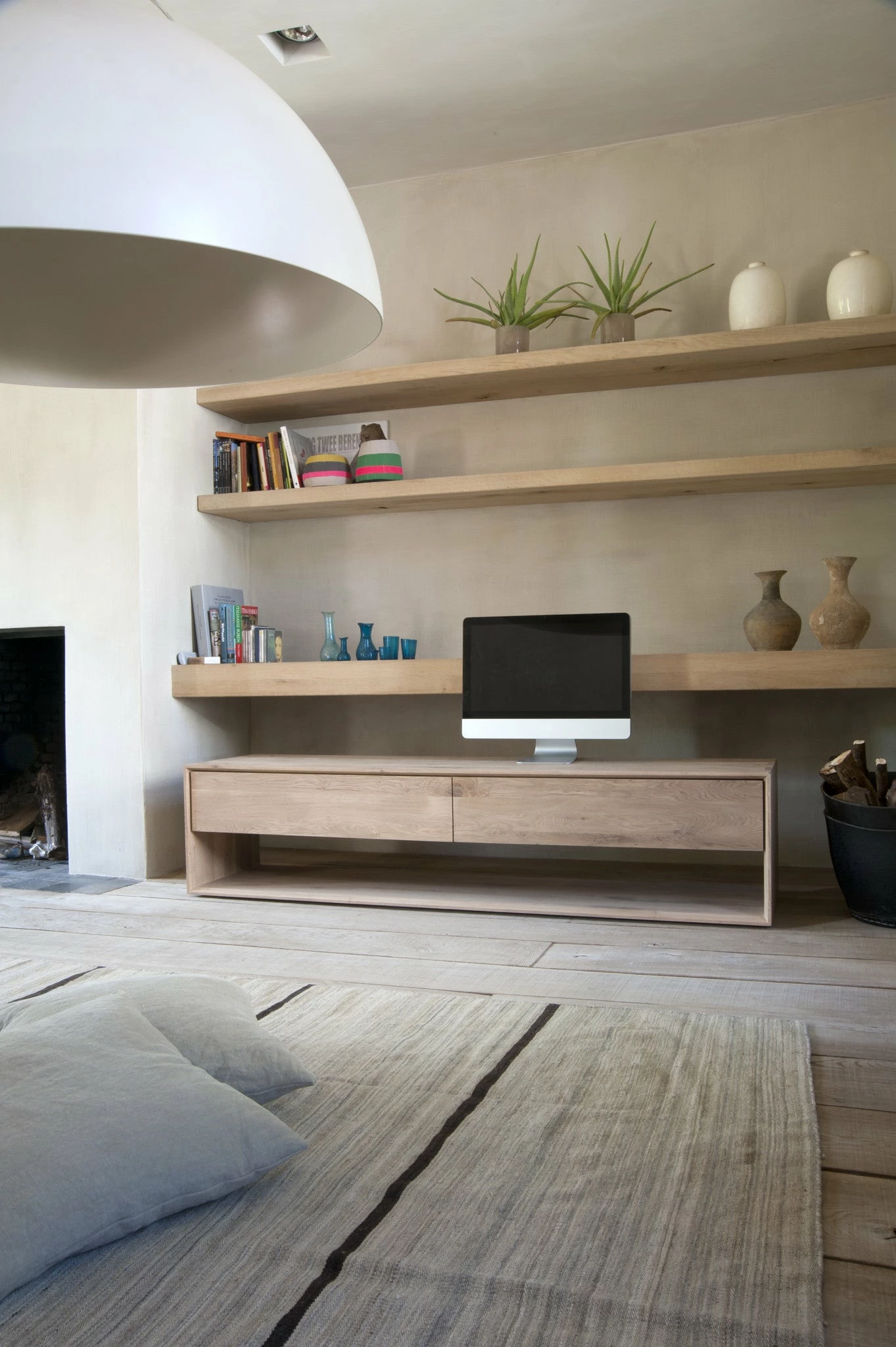 Light and simple, this Nordic TV Unit has beautiful craftsmanship and detailed joinery. Features include one flip-down door and one drawer. Available in two sizes.