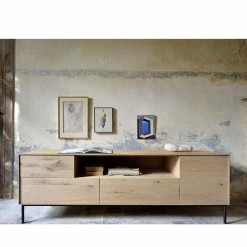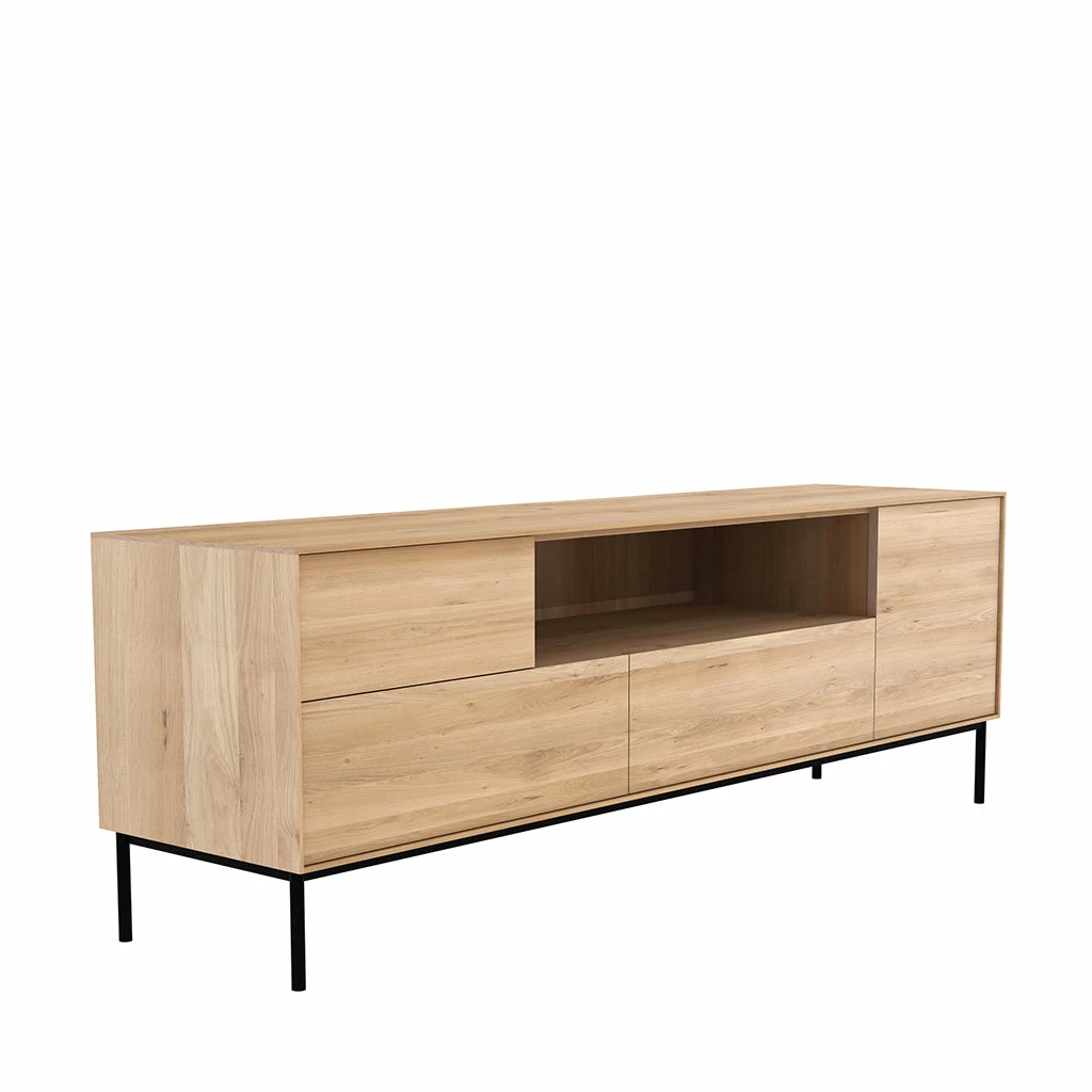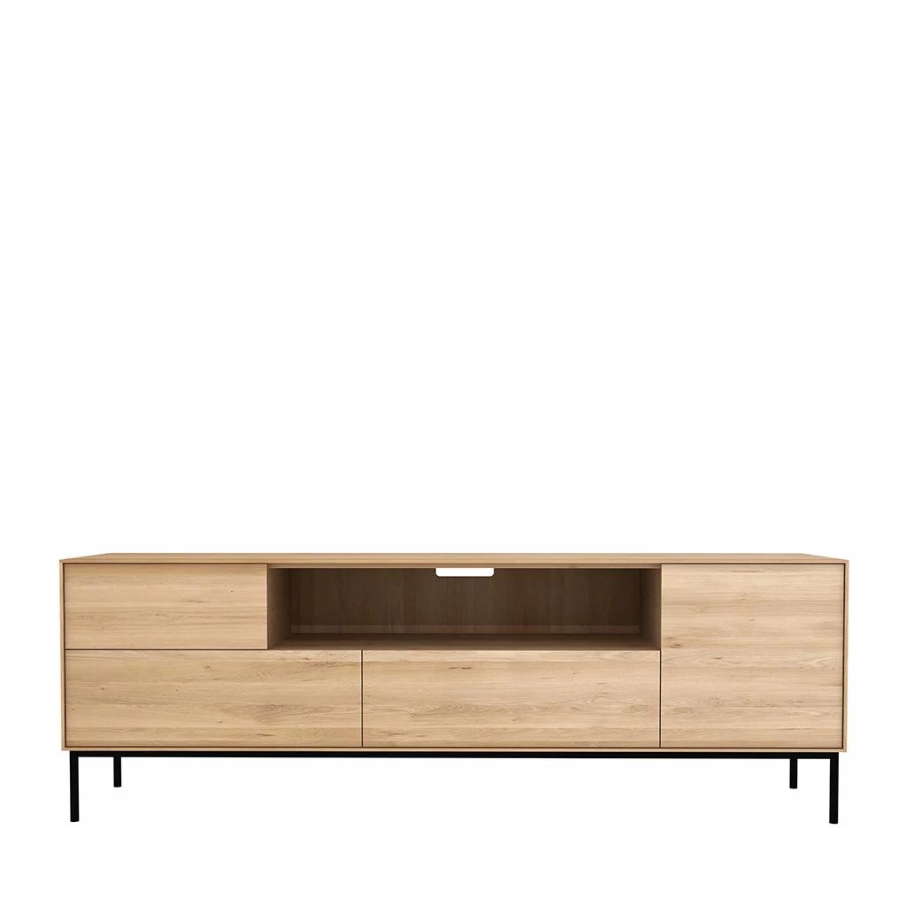 The Oak Whitebird Collection by Ethnicraft offer practical storage solutions celebrating the natural beauty of the timber. The Whitebird collection combines soft round legs and eye-catching graphic lines to create a light, airy design.