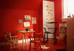 The children’s table has been adapted to children’s height, so that it becomes easier to immerse in play or in drawings. A stylised version of Børge Mogensen’s original dining tables.