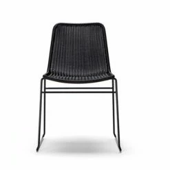 The C607 indoor/outdoor chair designed in 1964 by Japanese designer Yuzuru Yamakawa is one of our favourites, equally suited to indoor or outdoor use.  A sophisticated and sleek chair with its sleigh leg and minimal lines. Featuring a stackable, powdercoated black steel frame, the shell of the C607 chair outdoor/indoor version is made of polyethylene and available in black, white and natural. The C607 chair is also available in natural, charcoal rattan with black legs suitable for use indoors only.
