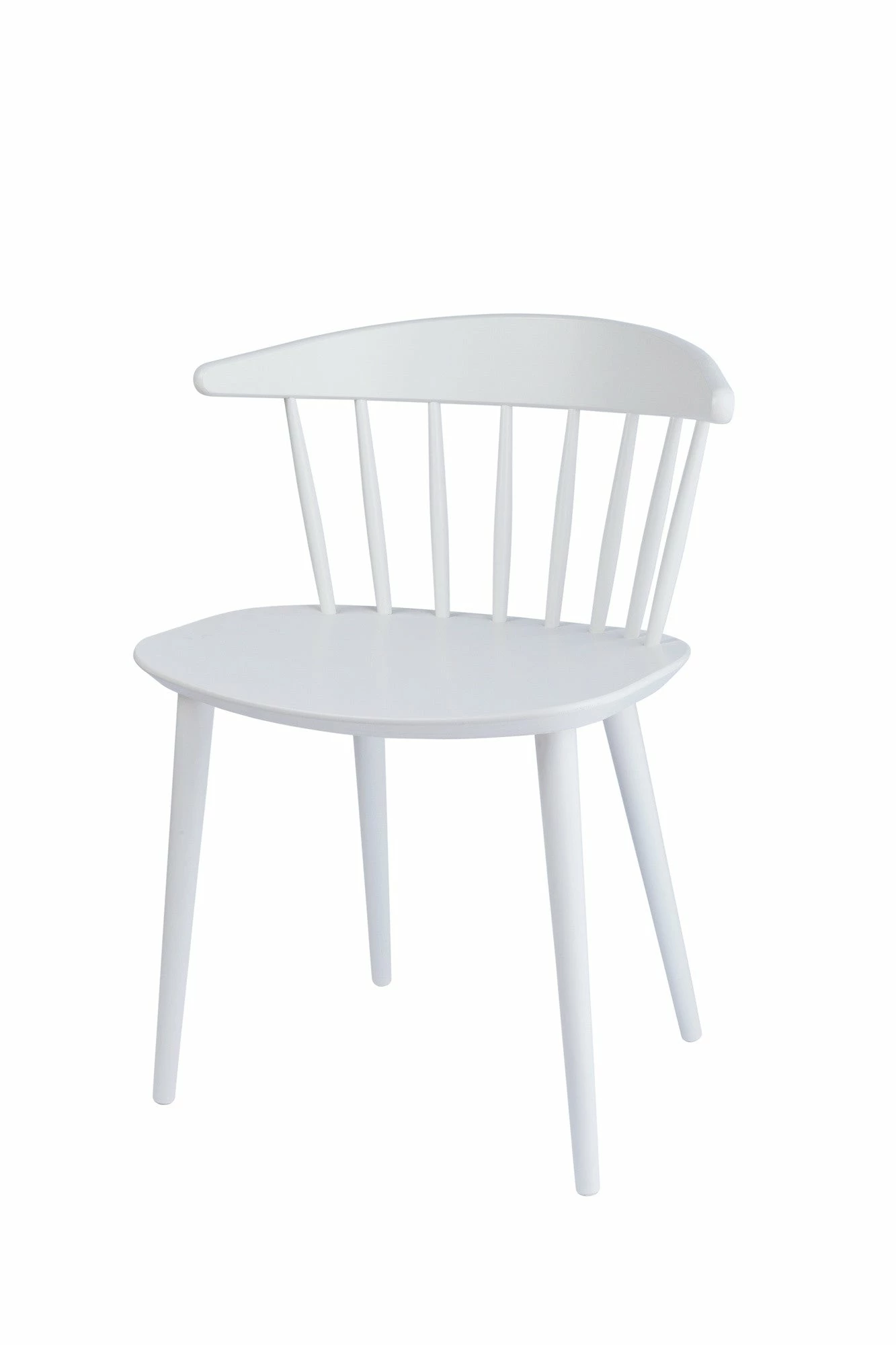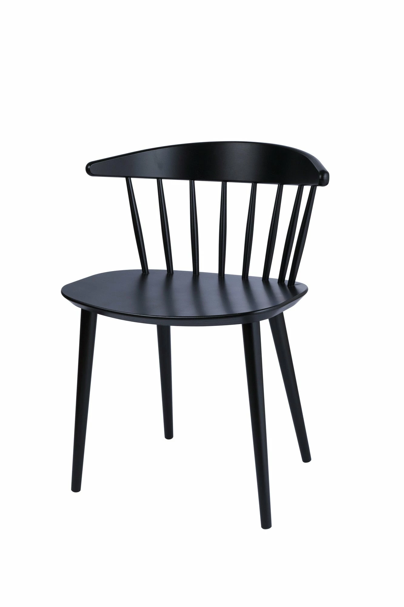With its wide back and seat combined with the light, vertical graphic expression, J104 resembles a cross between a dining chair and an easy chair. In this unique composition, although the broad seat takes up visual space, the spindle structure of the back lightens the overall impression and makes J104 a sculptural classic.
