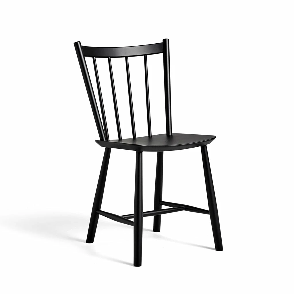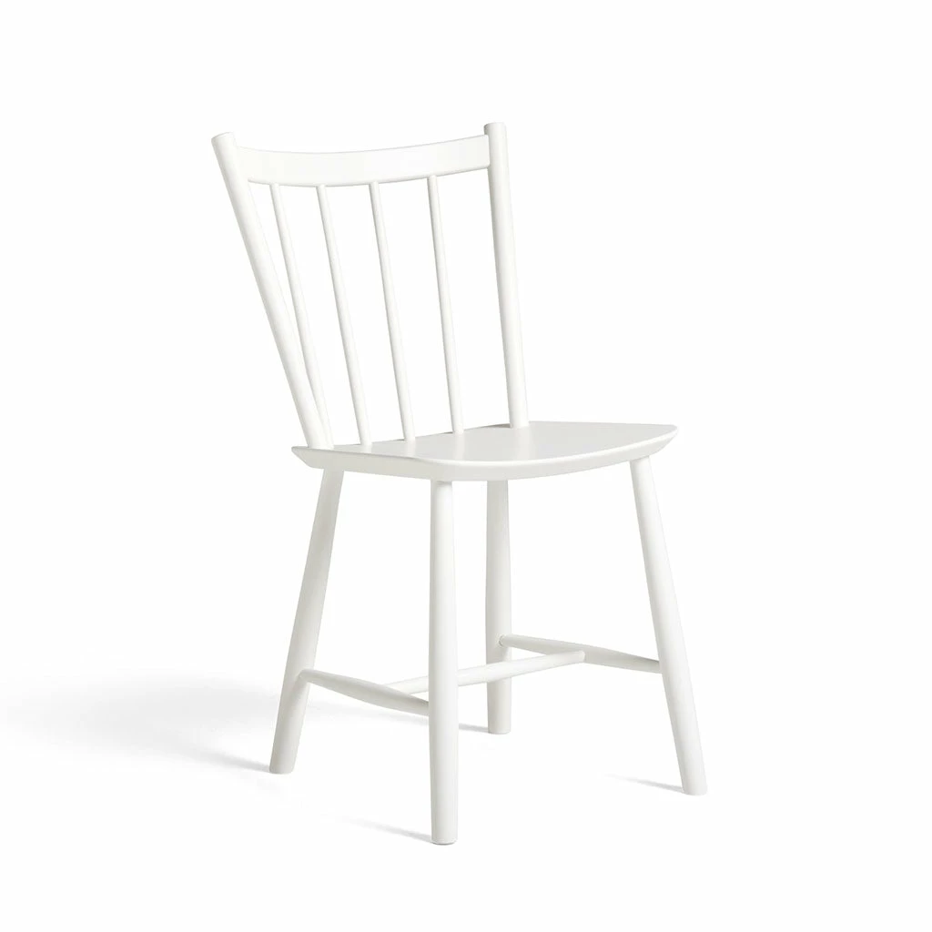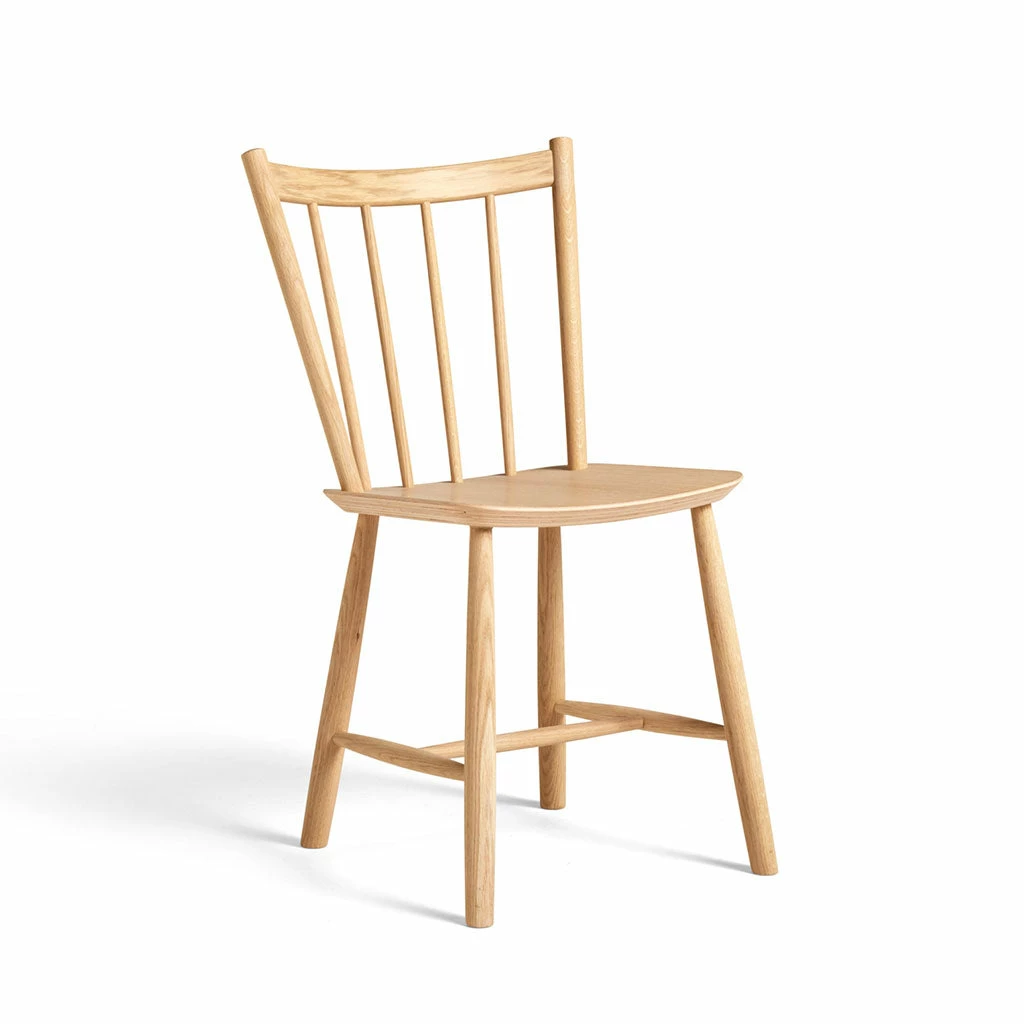 With its slightly slanted backrest and widely-spaced spindles, HAY’s reproduction of Børge Mogensen’s classic J41 chair is an uncluttered design that offers a timeless quality. With a broad plywood seat and frame in solid oak or beech, the design is both hard-wearing and comfortable. Available in oiled, matt lacquered or black and white painted finishes.