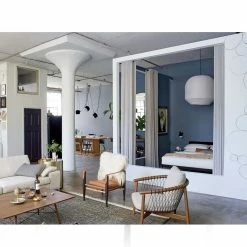 Parachute cords – a common industrial product – are an integral part of the chair’s design. Pulled down, the cords create a system of internal tension and supply the necessary back support, creating the feeling of being enclosed in a comforting, protective nest. The parachute cord is available in several colours, the frame in a selection of natural woods. Because of their simple, classic profiles, the Crosshatch chair and ottoman can work in a broad range of environments, from an executive office or a reception area to a penthouse or suburban living room.