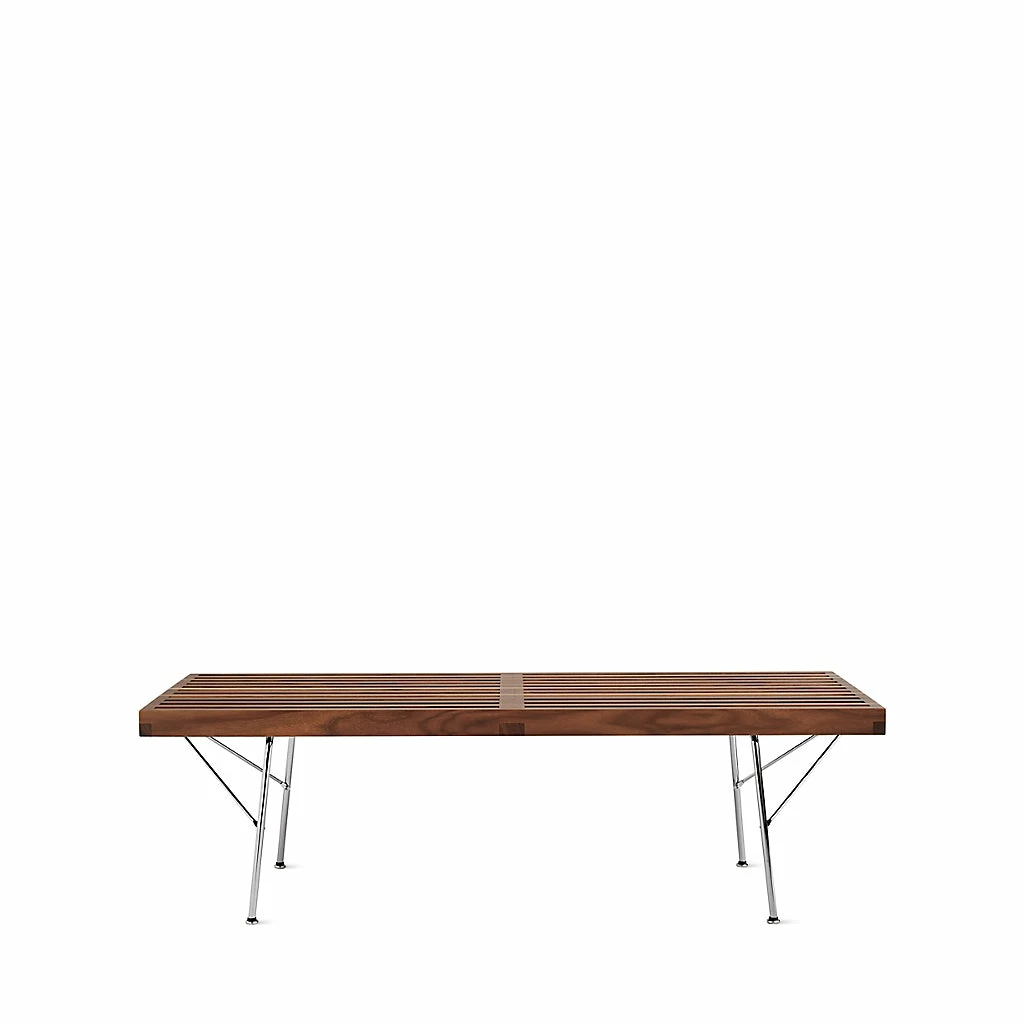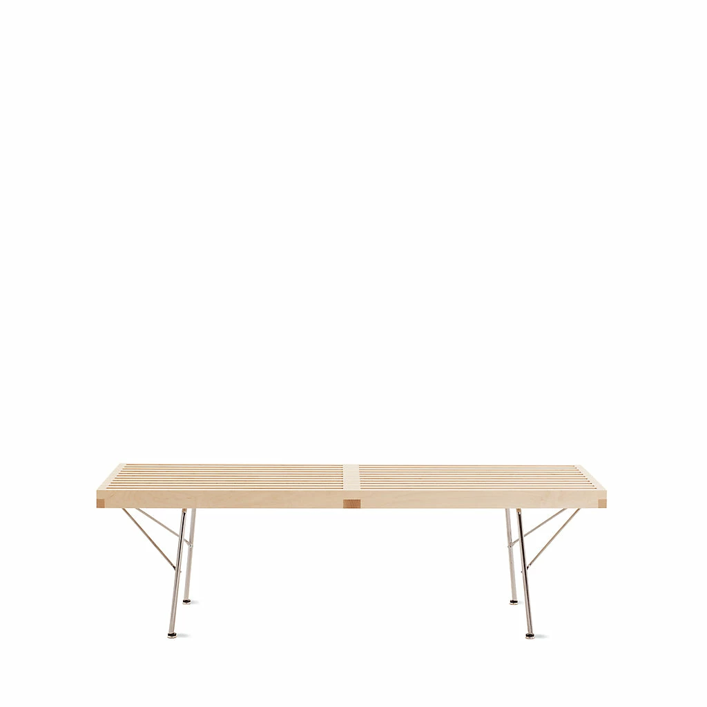 George Nelson’s Platform Bench (1946) is one of the great icons of midcentury modernism. For Herman Miller’s influential design director, utility was as important as beauty, and his spare rectangular bench is the result of this belief. It serves equally well as table, platform base or seating, depending on need and situation. No wonder it’s been called timeless; something this functional never dates. The Platform Bench’s legs are ebonized and finger-jointed for superior strength; also available with metal legs. Ships with legs unattached; simple assembly required. This is the authentic Nelson Bench produced by Herman Miller. Made in U.S.A.