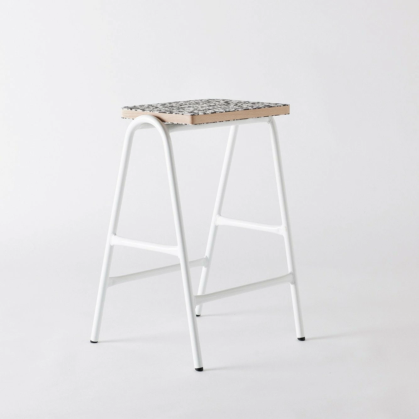 The newest addition to the Hurdle Family is the Hurdle counter and bar stool. The frame was developed by looking at intersecting lines and shadows, overlapping the frames structure and the footrest available for use on both sides of the stool.