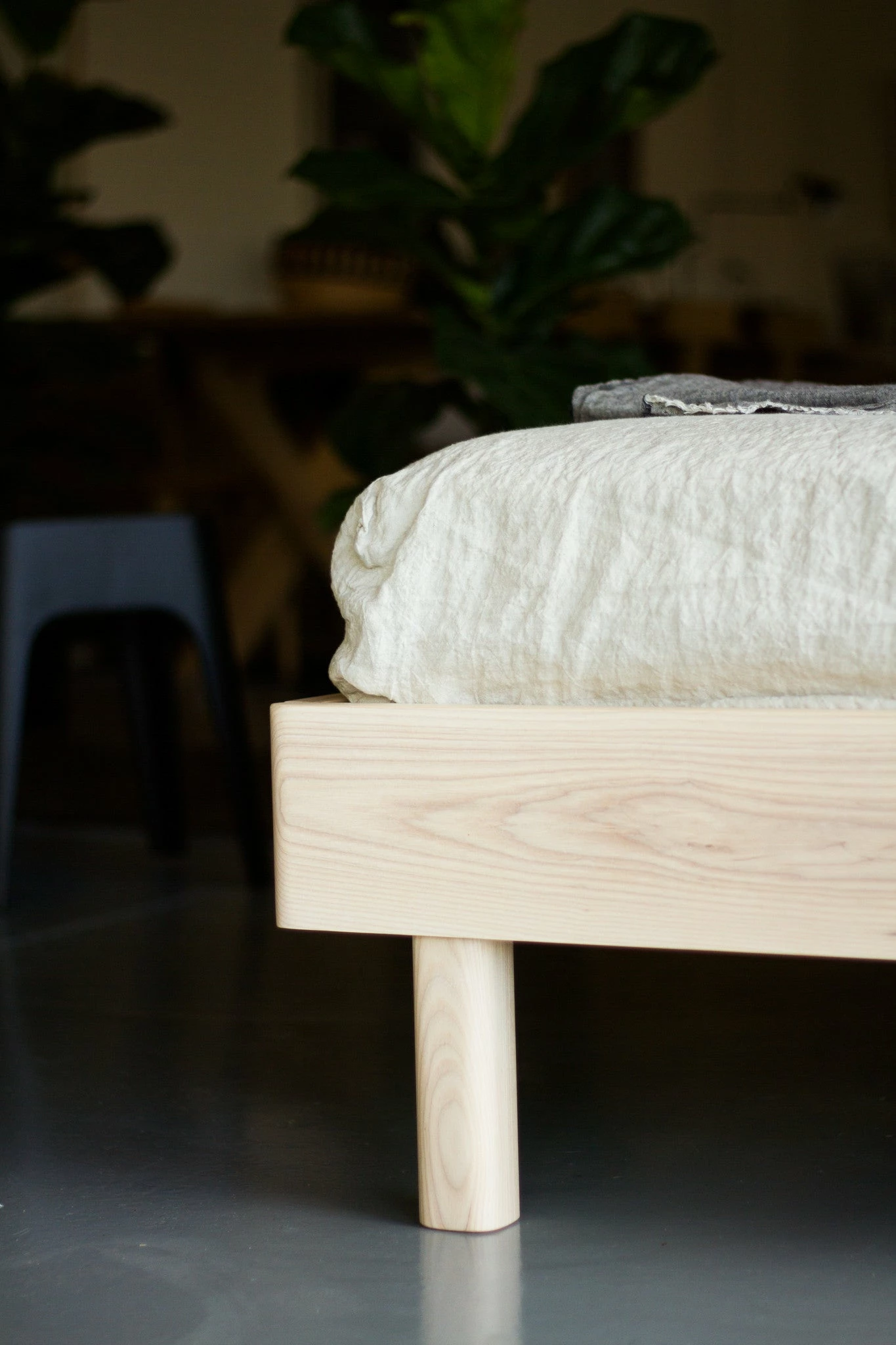 The Northern Bed is part of the new furniture range by Open Room. Made locally in Australia the design is based on our space for living principle, that less is sometimes more! With a low profile and curved edges we love the light tone of the solid American Ash finished with a natural Oil to highlight the beautiful wood grain.Â