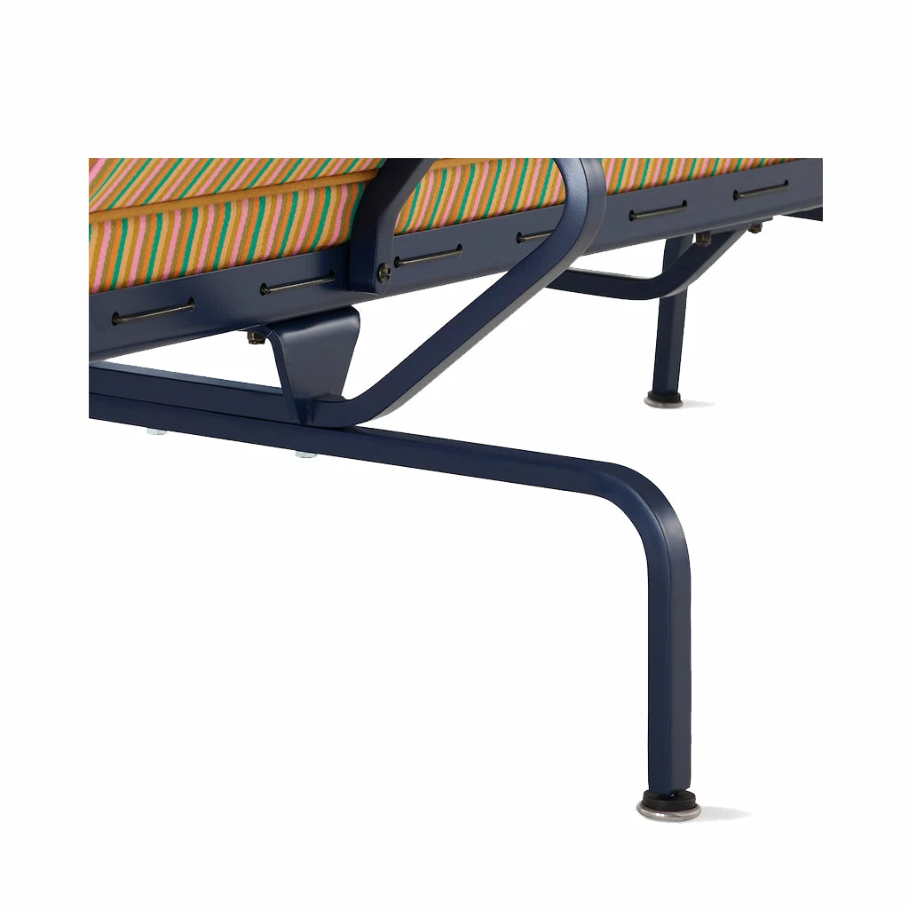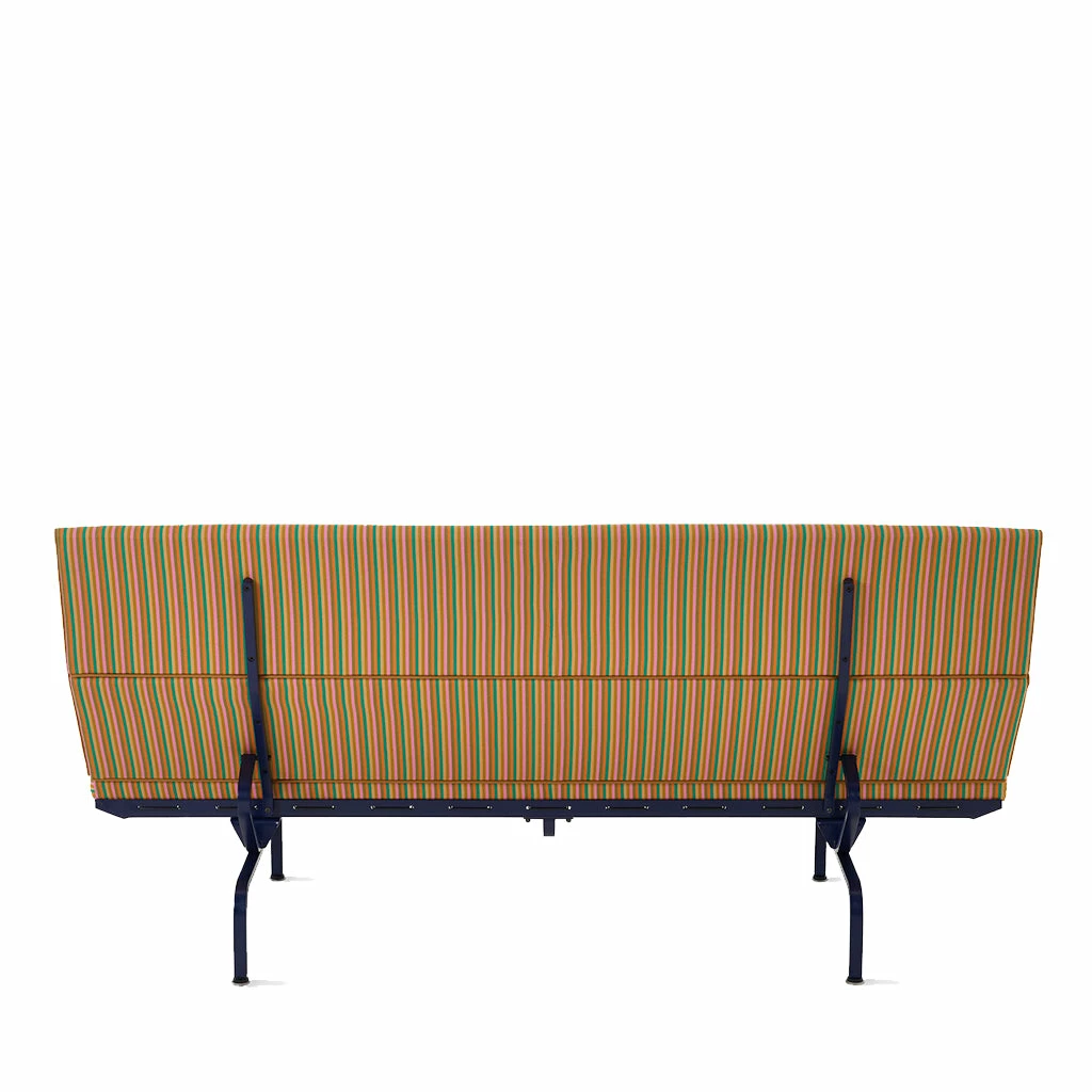 Inspired by a built-in that designers Charles and Ray Eames created for their home in Pacific Palisades, California, the Eames Sofa Compact (1954) sits on an airy pedestal of steel legs. For this special Herman Miller x HAY edition, textile brand Maharam faithfully reissued the previously discontinued colourway of Jacob’s Coat by Alexander Girard at the behest of Mette Hay. The powerful combination of the Eameses’ original design and Hay’s relevant point-of-view presents a reimagined classic of timeless appeal.